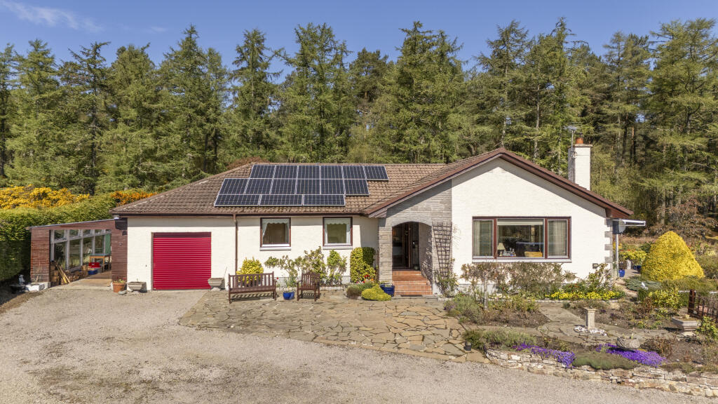 <br />The property is set in substantial garden ground and a driveway leads to the rear of the property providing ample space for parking as well as access to the two garages. The charming garden, which lies to the front, side and rear, has been beautifully landscaped, and is mainly laid to lawn with a variety of flower beds, shrubs, bushes and hedging, providing plenty colour throughout the summer months and is fully enclosed. A South facing, slabbed patio area provides a pleasant setting for outdoor entertaining and enjoying the peaceful, panoramic views. There are two further areas of land, outwith the main garden that are included in the sale.