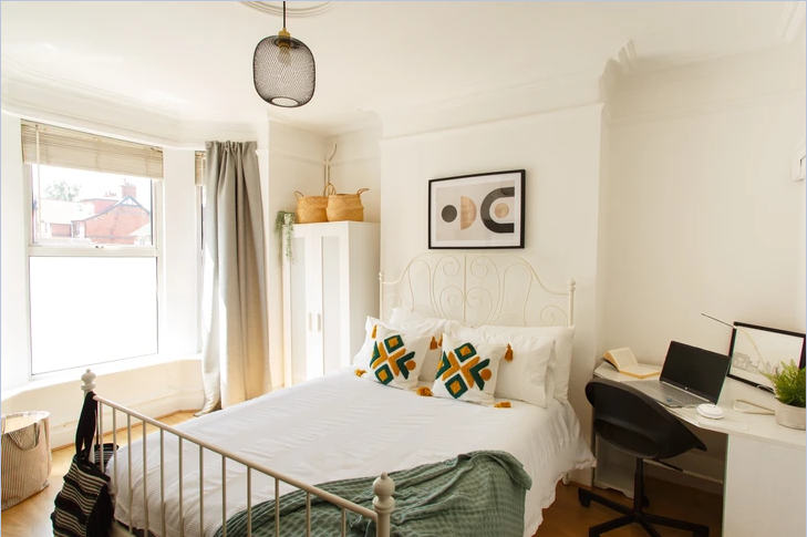 <br />The home features six generous double bedrooms all equipped with double beds and matching built in bedroom furniture including a desk, wardrobe, and drawers - all the storage you could ever need! Noticeboards and a mirror are also provided within the rooms. The high ceilings and large windows in this Victorian property allow for natural lighting to fill the spaces.