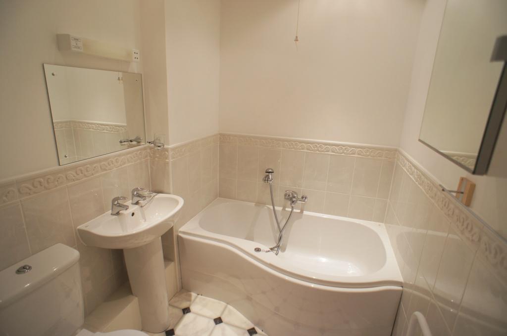 <br />Re-fitted combined BATHROOM/W.C. having a white suite with chrome fittings comprising panel bath with hand shower, pedestal wash hand basin and low flush W.C. A wood laminate floor and part ceramic tiled walls. A shaver socket and a electric extractor fan.