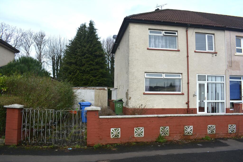| 155 Hawick Street, Glasgow, G13 4HE Requiring modernisation, larger END TERRACE VILLA offering excellent family accommodation formed over two levels. The property is centrally situated within this popular district immediately opposite the Clyde Campus which includes Clyde Primary, St Bernards Primary and Yokerburn Nursery, a few m... | 3 | 2 | £ 149,995 | Wednesday, 02-Apr-25 11:53:17 UTC | |