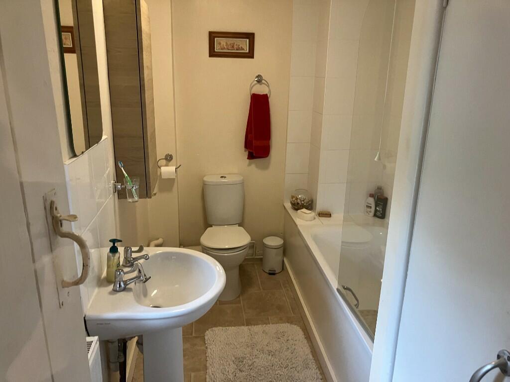 <br />A good-sized family bathroom comprising bath, wash-hand basin and WC