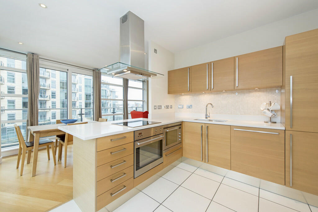 | Bridges Wharf, Battersea, London, SW11 A stylish two-bedroom apartment in a secure Battersea riverside development. Recently refurbished with a new kitchen, ceramic wood-effect flooring, and upgraded bathrooms for modern living. It features two private balconies, one accessed from the reception room and another from the master bedroom.