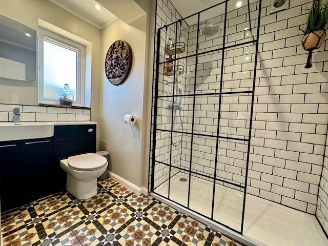 Based on the provided images, the property appears to be in good condition. It has undergone some modernisation, with updated kitchen and bathroom fixtures. The interior is well-maintained and presented. There is evidence of recent renovations or extensions, suggesting a property that is well-cared for.