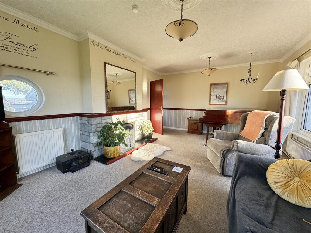A commodious well presented 3 double bedroomed bungalow located in Upper Borth with private driveway, double garage, garden and sea views.