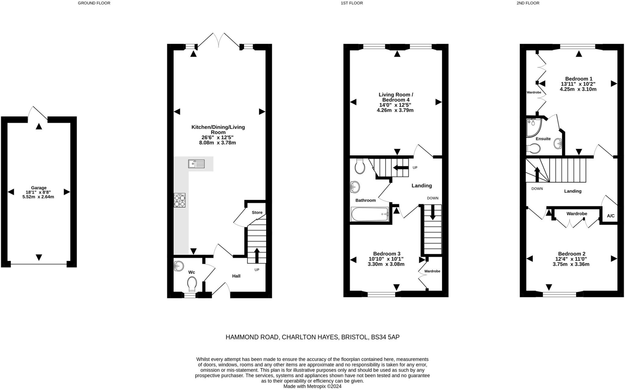 A 3/4 double bedroom townhouse with garage on a sought after road in Charlton Hayes, offering open-plan living, with an ensuite, family bathroom and downstairs w/c.