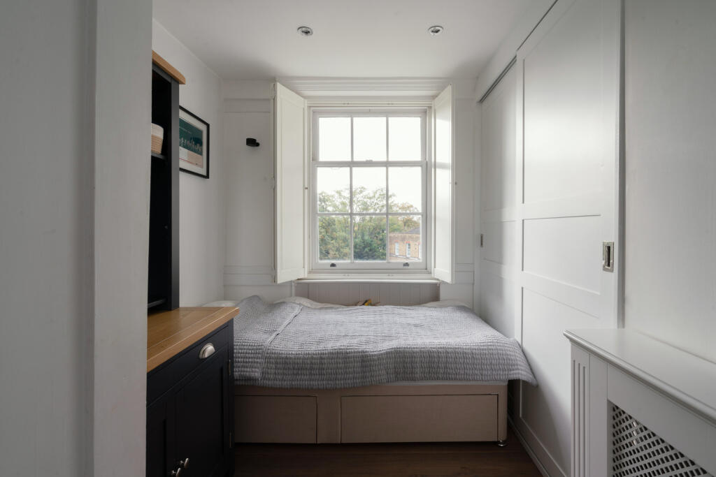 This bright apartment lies on the top floor of a remarkable Grade II*-listed, 18th-century building on West Grove in Greenwich, close to Blackheath village. It stretches to over 1,000 sq ft, with two bedrooms, refined period features, and a sensitive but decidedly contemporary decorative scheme. ...