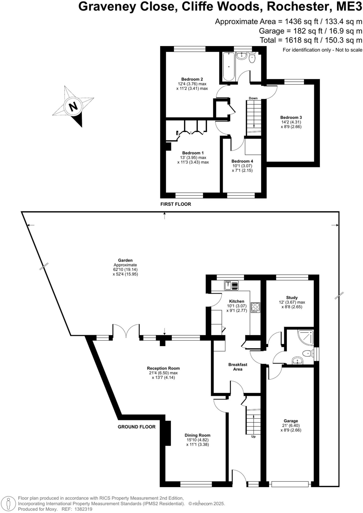 This is a detached property in Cliffe Woods, Kent, featuring four bedrooms and two bathrooms, with a total square footage of 1,618 sqft and a plot size of 3,271 sqft. The property includes a garage and a well-maintained garden with a patio. The interior appears to be in good condition, with modern fixtures and fittings. While located in a suburban area, it is conveniently close to Cliffe Woods Primary School (Ofsted: Outstanding). The listing price of £500,000 is above the local average but reflects the property’s size and condition. The property is also located close to Strood (Kent) train station.