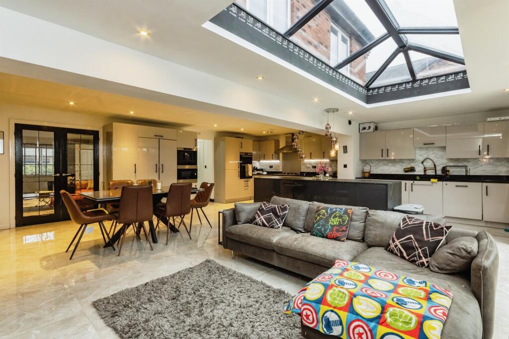 This 5-bedroom detached property located in Crocus Gardens, Edwalton, Nottingham, presents itself as a modern and well-presented family home. The recent extension incorporating a substantial open-plan kitchen, living, and dining area is a key highlight, demonstrating a high level of contemporary design and offering substantial living space. The property benefits from a landscaped rear garden, a desirable feature in a family-focused area. Edwalton’s reputation for good schooling and accessibility makes this property particularly appealing to families, offering a good blend of convenience and quality of life. The interior is decorated in a modern style and includes multiple reception areas. While the property shows signs of recent upgrades, some minor improvements could be made in areas such as bathroom fixtures and fittings to attain a higher level of condition. The overall condition is still considered good without requiring major renovations or repairs. Without specific plot size and square footage data from comparable properties, accurately assessing the value per square foot remains challenging, making a definitive statement on price-per-sqft value difficult. However, based on nearby listings, the asking price seems reasonably aligned with the market value for similar-sized family homes in Edwalton, making it a potentially solid investment opportunity for the right buyer.