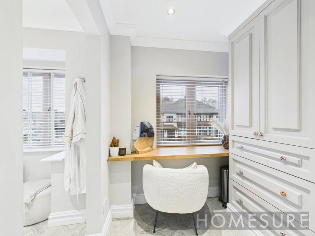 This exceptional three-bedroom, three-bathroom semi-detached house offers a perfect blend of contemporary style and functional family living.
