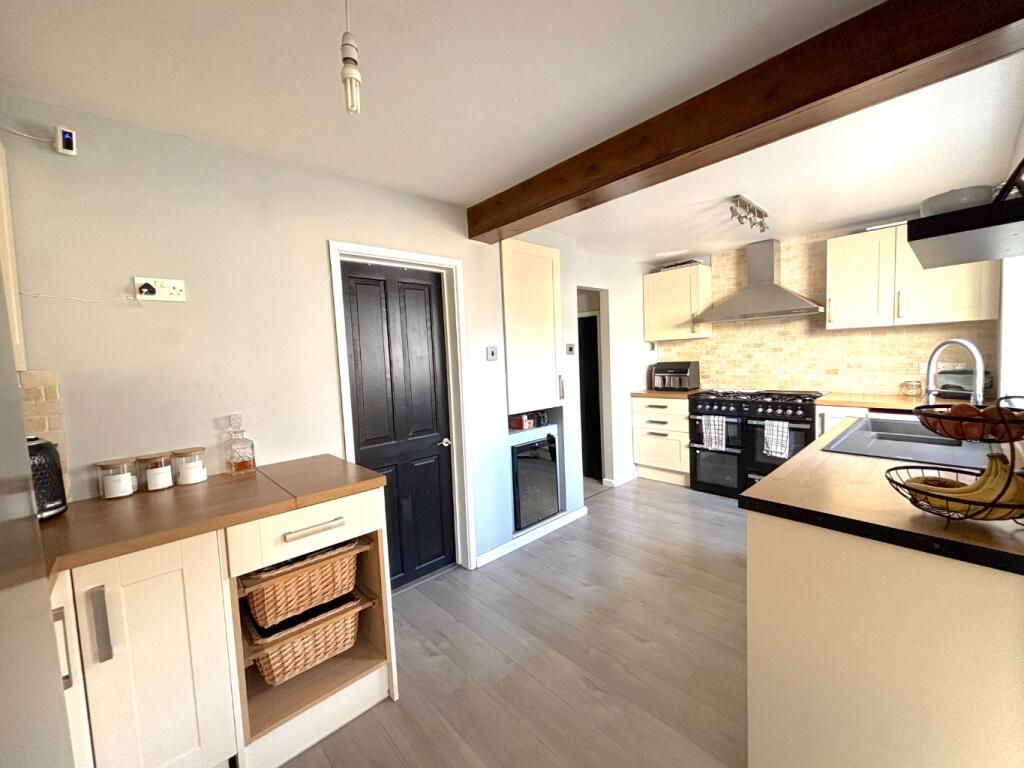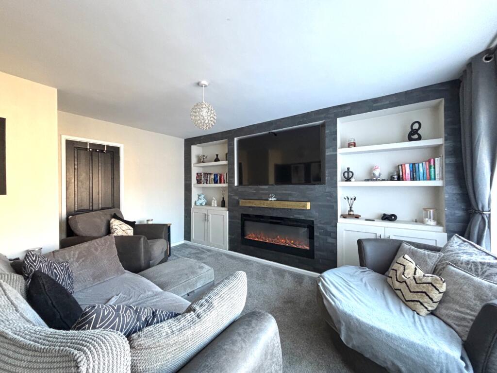 Modern extended semi-detached home on Carter Road near village amenities, school, and countryside. Offers lounge with media wall, fitted kitchen/diner, 3 bedrooms, and family bathroom. Features driveway for several cars, large powered garage, and spacious rear garden with patio and lawn.