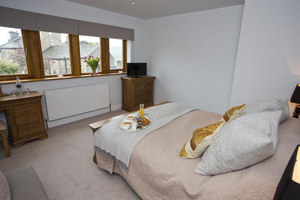 FURNISHED: A stunning modern four double bedroom town house in this very sought after location a short walk from Holmfirth centre with garage, off road parking and low maintenance paved garden. Finished to a very high standard with oak floors, solid fuel stove and contemporary fixtures and fittin...