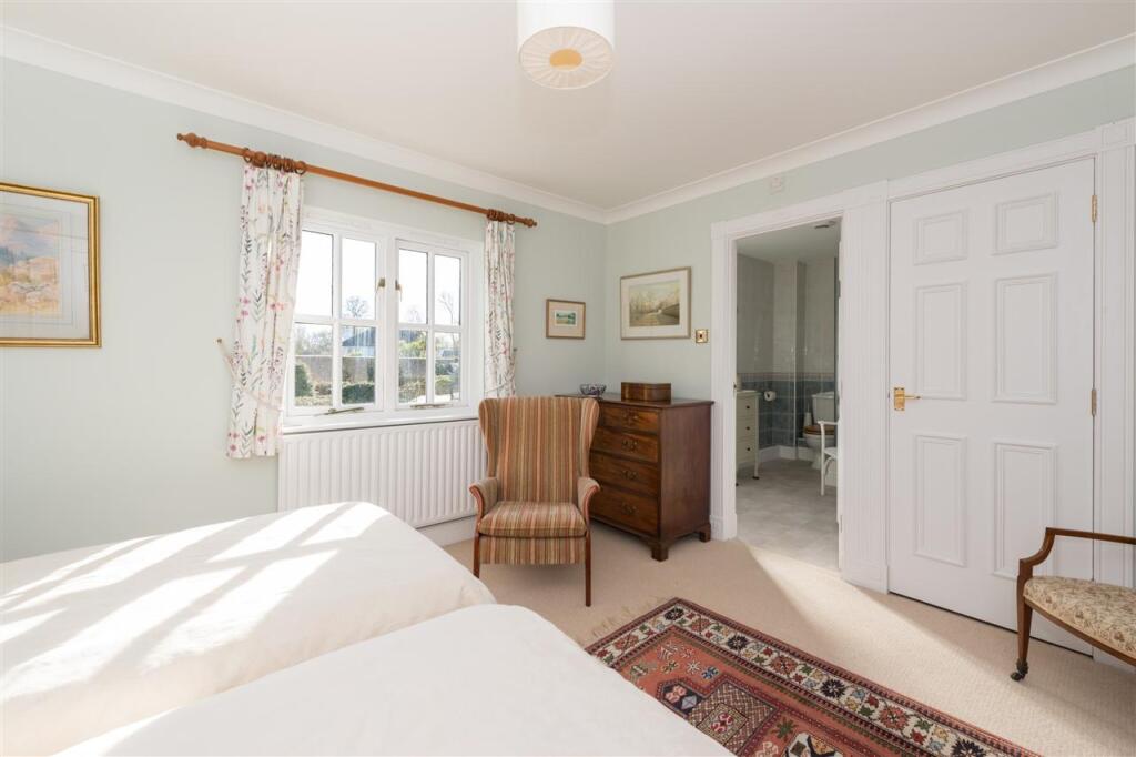Huon Cottage is a magnificent four bedroom detached family home, built by respected builder Millwood Homes in 1997 and is offered to the market with no onward chain. Located along a pretty gravel lane in the idyllic village of Sheldwich, the property occupies a plot measuring approx. 0.6 of (cont.)