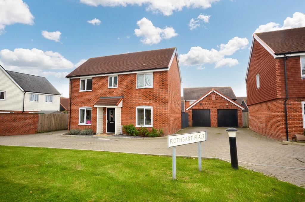 This is a 3-bedroom detached house in Rothbart Place, Sellindge. The property is in good condition and has a well-maintained garden. The property is located close to local amenities, including a primary school and a train station. The listing price seems high for the square footage of the property.
