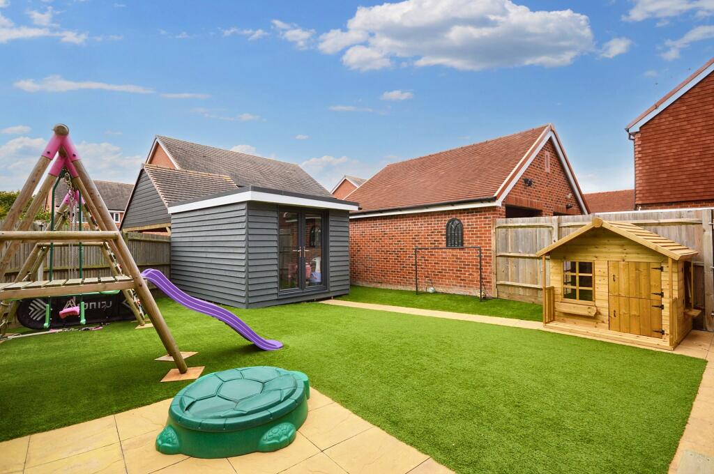 "Charmingly designed 3-bed Detached House with Guide Price £380,000-£400,000. Features cosy bedrooms, Garage, Cabin, low maintenance garden, NHBC Warranty, EPC 'C' Rating. Blend of comfort & practicality, with serene patio area, ample Off Road Parking, and insulated Cabin for gatherings. Ideal fo...