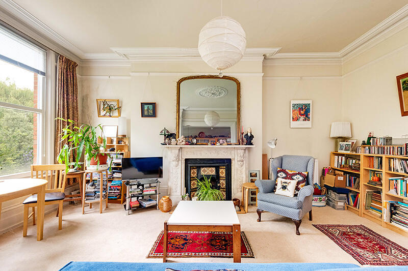 A large one bedroom raised ground floor flat (800 Sq Ft - 74.32 q M), with beautiful original features, high ceilings, elegantly proportioned rooms, and a private south facing balcony, situated moments from Hampstead Heath.