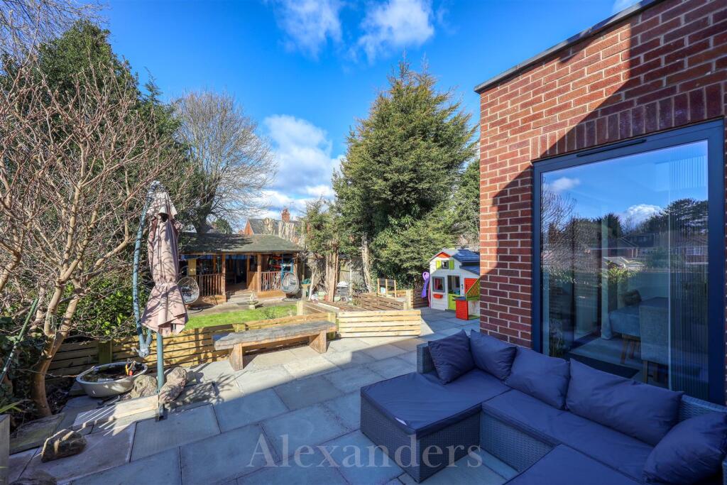 The property includes features such as a modern kitchen, multiple bathrooms, and a well-maintained garden. Based on the images, additional tags that could be applied are: MODERN, PATIO.