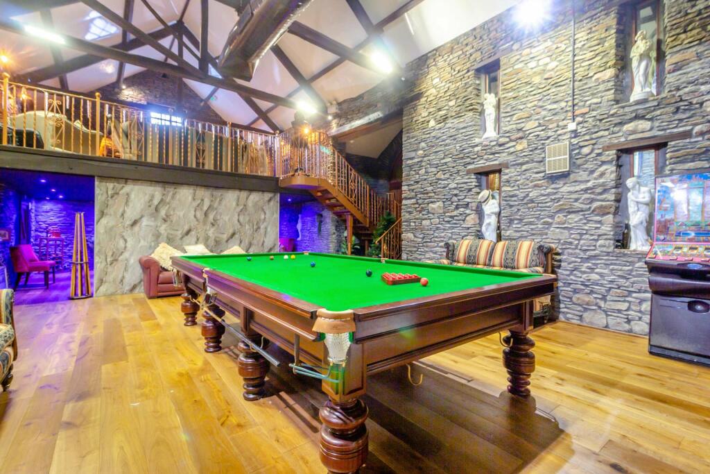 In a quiet, rural location with sweeping views yet close to Cardiff, this luxury home boasts a designer kitchen, open-plan reception spaces, and four bedroom suites. Within approximately 0.85 acres of land is a barn with games room, cinema, gym, sauna and bar.