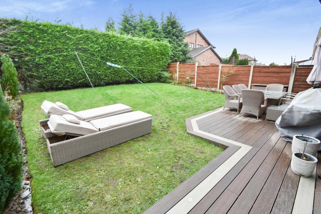 This three-bedroom, three-bathroom detached house in Besses, Bury is presented in immaculate condition. The property has undergone a significant renovation or modernisation, resulting in a contemporary, stylish interior. High-quality fixtures and fittings are evident in the bathrooms, which feature modern tiling, stylish sanitaryware, and underfloor heating. The kitchen is equally impressive, boasting modern appliances and cabinetry. The photos reveal a spacious living area and a good-sized garden that has a patio/decking area. Three double bedrooms with fitted wardrobes add to the property’s appeal, and the overall presentation suggests a ‘turn-key’ home ready for immediate occupation. The location benefits from its proximity to local schools, which will be attractive to families. The reasonably close proximity to train stations adds convenience for commuters. However, data on the property’s precise plot size is unavailable, and more detailed comparative data on house pricing in the area would be useful to confirm the list price’s accuracy.