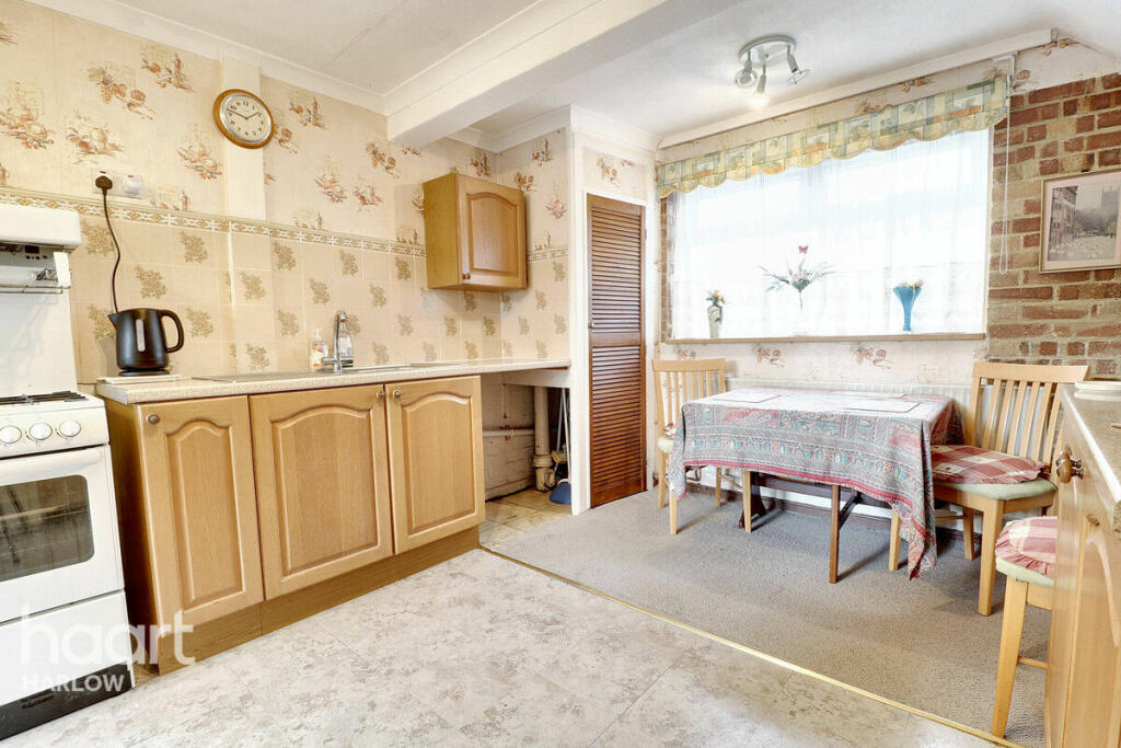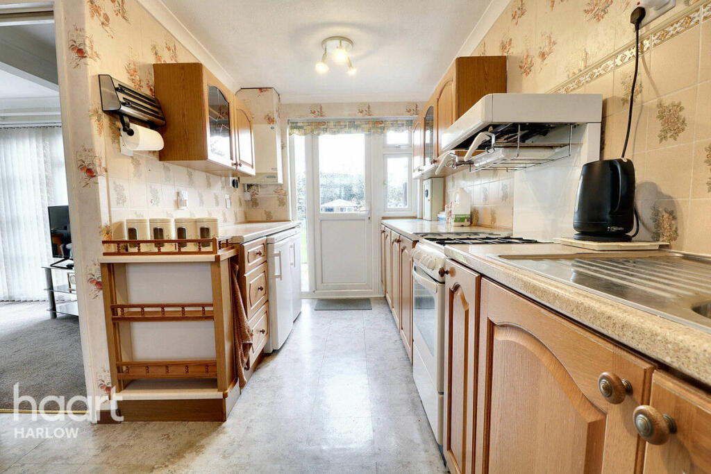 This two-bedroom terraced house in Netteswell, Harlow, is listed for sale at £300,000. The property’s location offers convenience with its relatively close proximity to Harlow Town railway station and several schools. The house shows signs of its age, with the interior showing dated décor, and could benefit from modernisation works. The kitchen and bathroom appear to be in need of updating. The property features a garden with a shed and greenhouse which could improve the liveability of the property. Overall, the property offers a blend of positive and negative aspects, with a fair market value that remains relatively competitive given the market in Harlow, the need for modernisation is a factor to note.