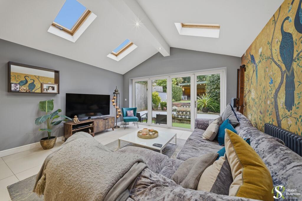 Extended four-bed semi in Mobberley village with open-plan kitchen, flexible layout over three floors, private garden, covered entertaining space, en-suite, parking, and great local amenities.