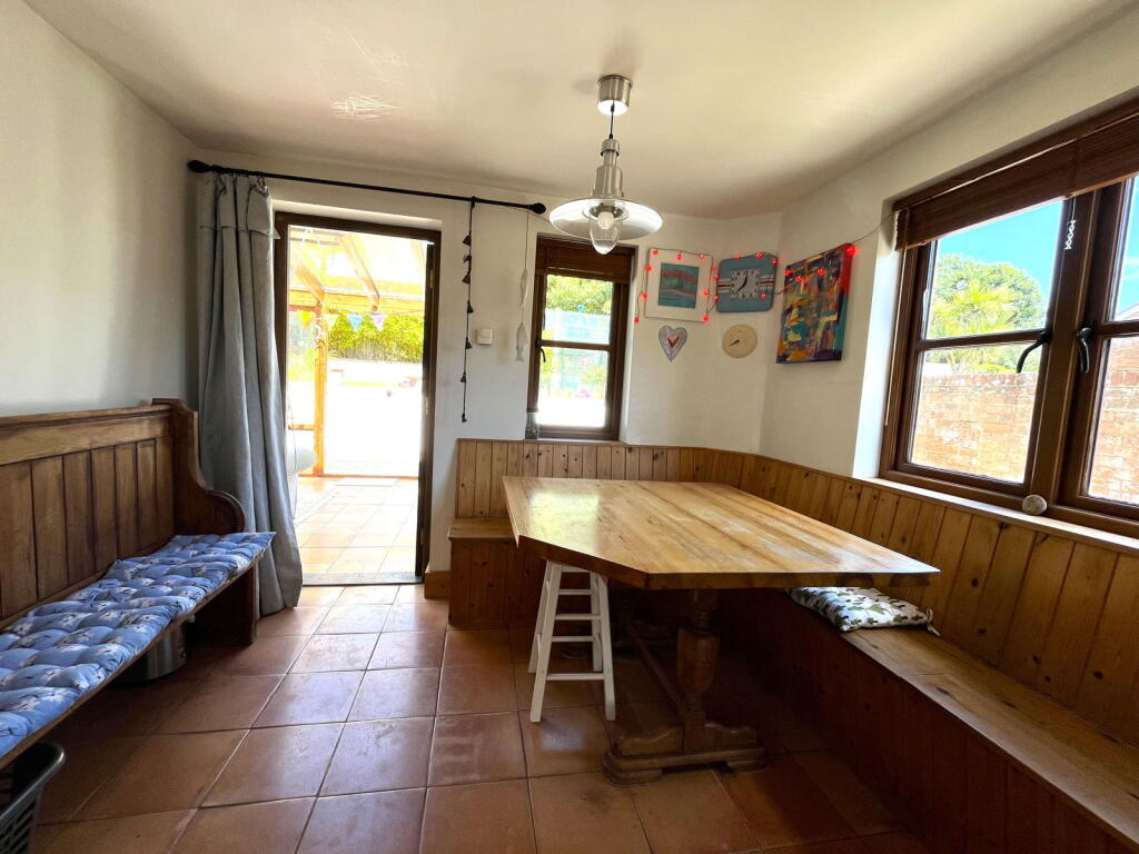 This property is a 4-bedroom, 2-bathroom detached house located in Budleigh Salterton, Devon. The house is situated on Stoneborough Lane and benefits from a good-sized garden, including a greenhouse and patio area. The interior is presented in a lived-in condition, with some areas showing signs of wear and tear. However, the property seems to be structurally sound and well-maintained. There is a wood-burning stove in the living room, adding a cozy atmosphere. The kitchen appears functional but could benefit from some modernization. The property benefits from a sauna which is a desirable feature. The location is in a quiet residential area, and while transportation links are not mentioned, the proximity to several schools (St Peter’s Church of England Primary School being the closest at 1.70 km) is a positive aspect for families. The list price of £595,000 is slightly above the average price for the area (£565,723), but considering the property’s size (1181.55 sqft) and features (garden, sauna), it could be considered reasonable, particularly when compared to nearby similar properties. More information on the condition of the property would be needed to provide a more precise evaluation.