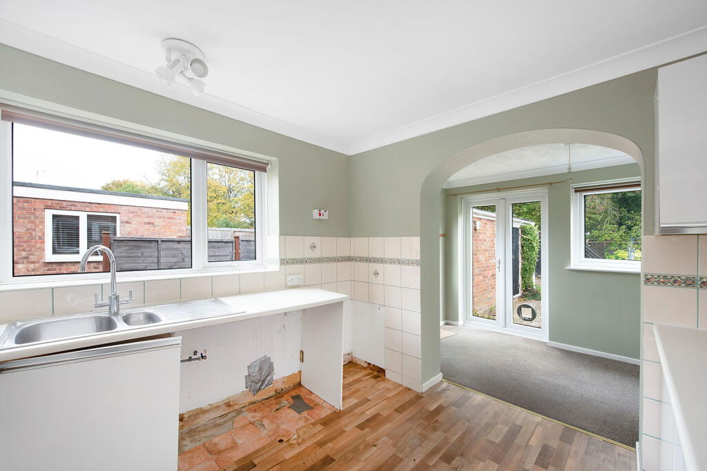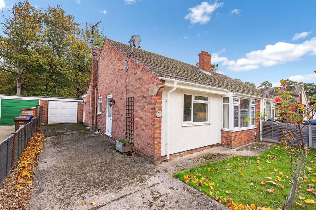This is a two-bedroom semi-detached bungalow located in Kentford, West Suffolk. The property is in need of some modernisation, particularly in the kitchen. It features a garden, driveway, and is located within a reasonable distance of local amenities such as schools and a train station. The property is listed at £230,000, which is slightly above the average price for similar properties in the area, but seems reasonable given the location and size of the property.