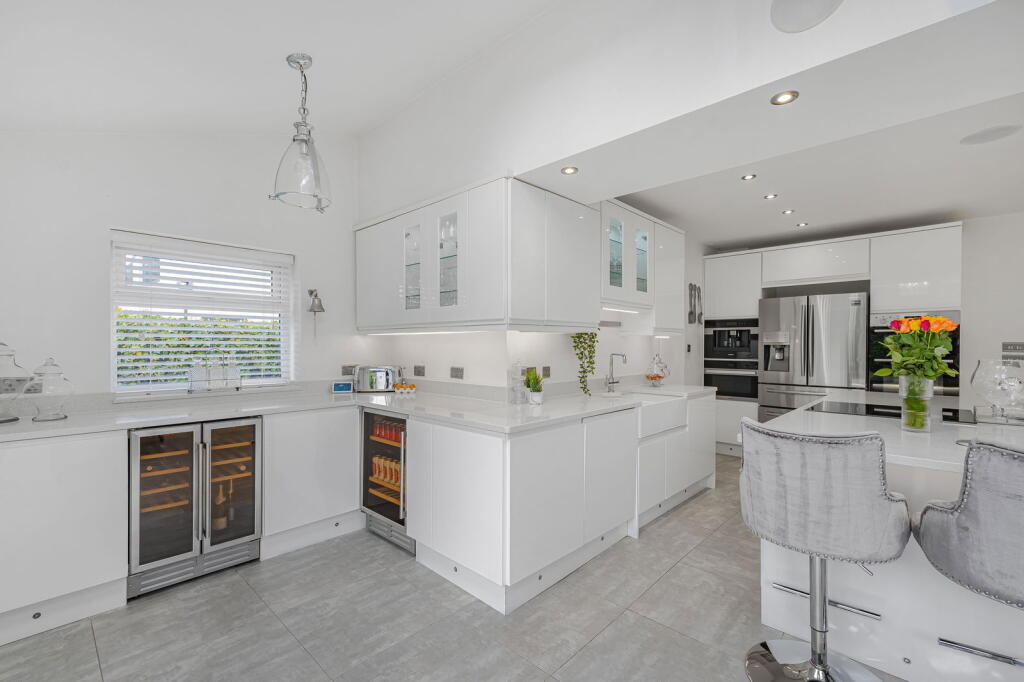 Monica Drive is located in Farnworth, Widnes, Cheshire. The property is a detached house with four bedrooms and three bathrooms, and a total area of 1,722.23 sqft. The list price is £750,000. The average house price in the area is £222,105, with an average size of 922 sqft and an average price per sqft of £240. This property is significantly larger than average. Based on the images provided, the property appears to be in excellent condition, having undergone a recent and high-quality renovation. The kitchen and bathrooms are modern and well-equipped. The property also benefits from a good-sized garden. The location is in a residential area with nearby schools and transportation links. Given the property’s condition, size, location and amenities, the list price of £750,000 appears reasonable, though slightly higher than some comparable properties in the immediate vicinity. However, the superior condition and recent renovation likely justify the higher price point.