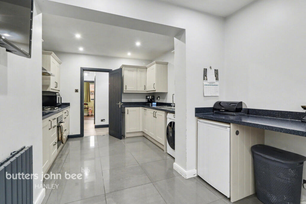 Modern two-bedroom bungalow in Cheadle, Stoke-on-Trent, featuring an extended kitchen, stylish interiors throughout, garage, large driveway, and generous garden space, offering comfortable and convenient single-level living