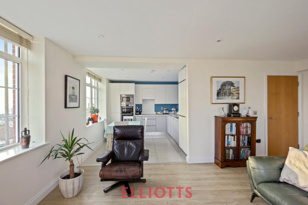 Elliotts are delighted to offer for sale this stylish Art Deco apartment, perfectly situated in central Brighton. With two double bedrooms, two bathrooms, and stunning sea views, this fifth-floor residence offers spacious comfort and is being sold with no-ongoing chain