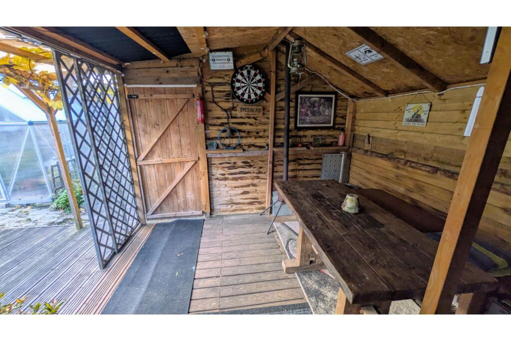 This is a three-bedroom semi-detached house in Ercall Gardens, Telford. The property is listed with Purplebricks at £199,950. It features one bathroom and offers 907.4 sqft of living space. The property includes a garden with a shed, greenhouse, and patio area. Nearby amenities include Wellington (Shropshire) train station and several schools. The interior appears to be in reasonable condition, although some rooms could benefit from modernisation. The price seems competitive compared to the average property price in the area.
