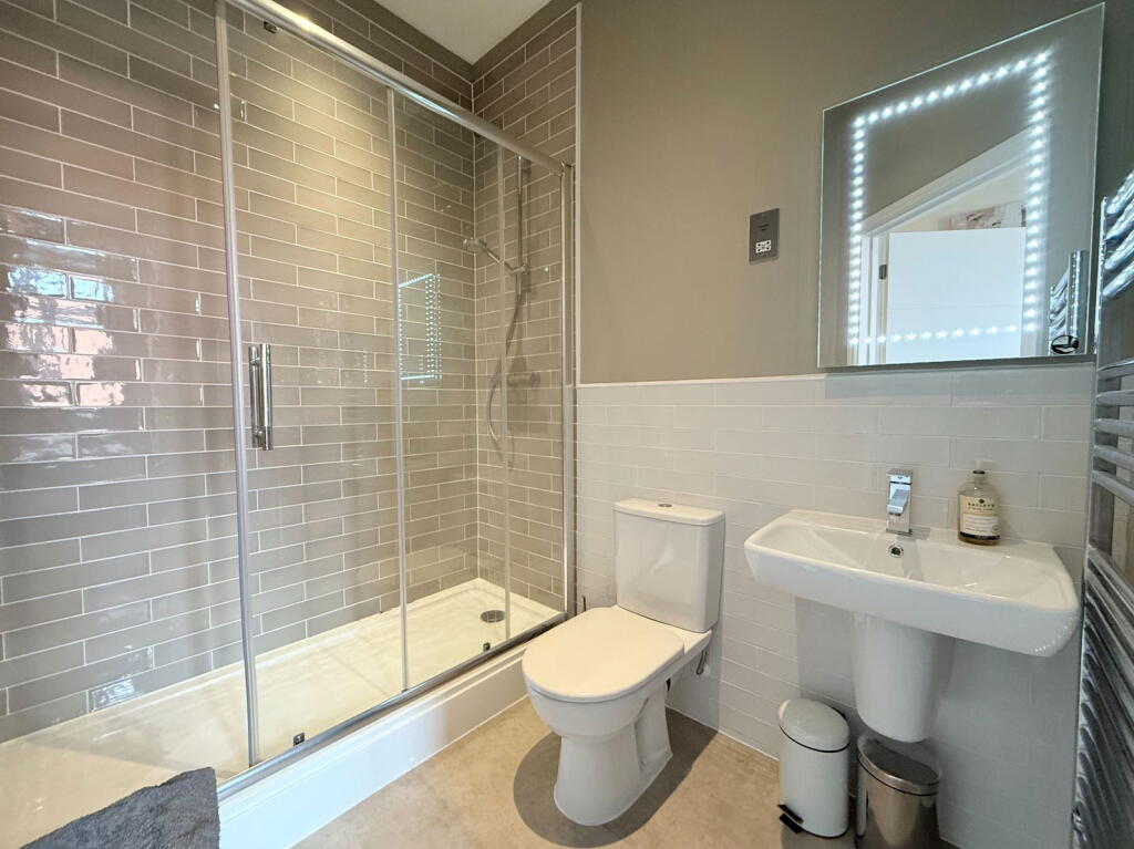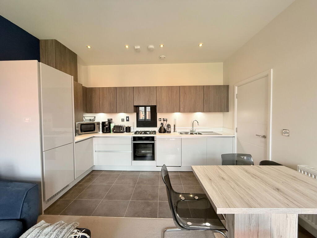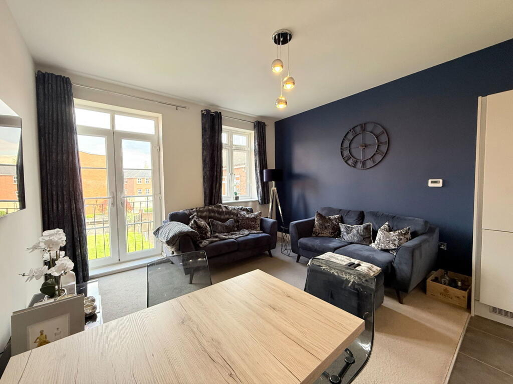 The property is a modern, well-maintained 2-bedroom, 2-bathroom flat in Dickens Heath, Solihull. It benefits from a convenient location near good schools and transport links. However, it lacks private outdoor space, and the communal garden is shared. The price point is lower than the area average, potentially due to the smaller size and lack of private garden.