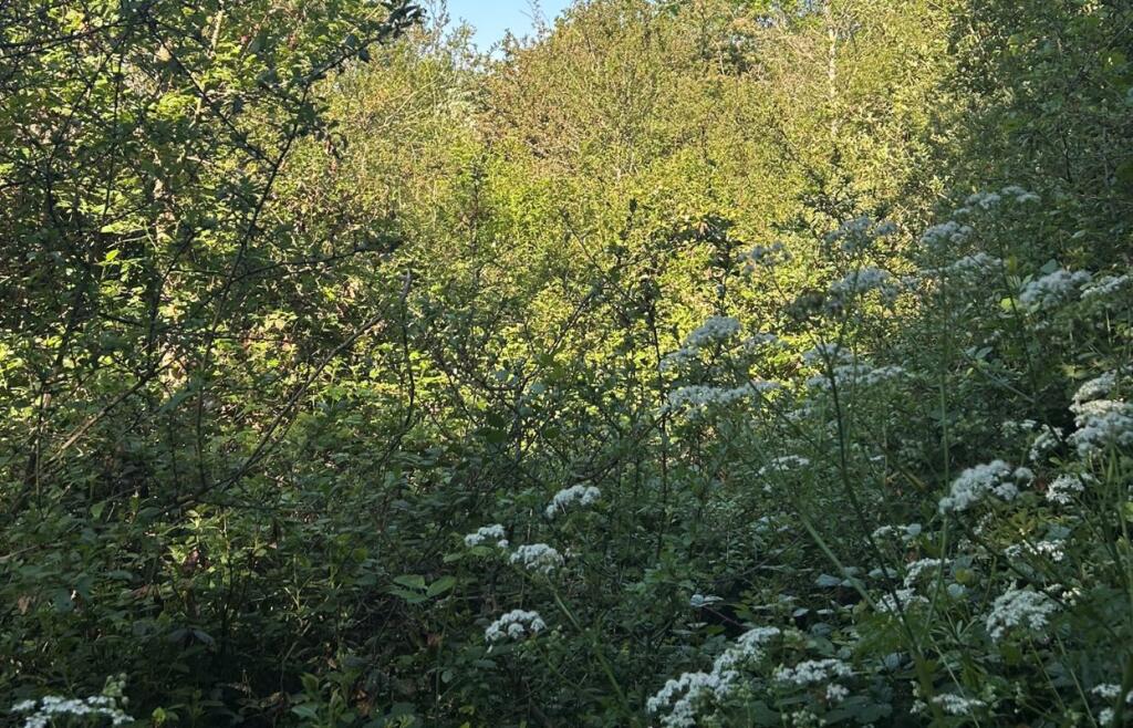This is a plot of land for sale in Fobbing, Thurrock. The listing price is £90,000. The average property price in the area is £362,595, with an average price per square foot of £322. The nearby streets have average prices ranging from £325,000 to £525,000. There are several schools located within a few kilometers of the property, including Ortu Corringham Primary School, Ortu Gable Hall School, and Vange Primary School And Nursery. Basildon, Pitsea and Stanford-Le-Hope train stations are within 6km of the property. Based on the images, the land appears to be overgrown.