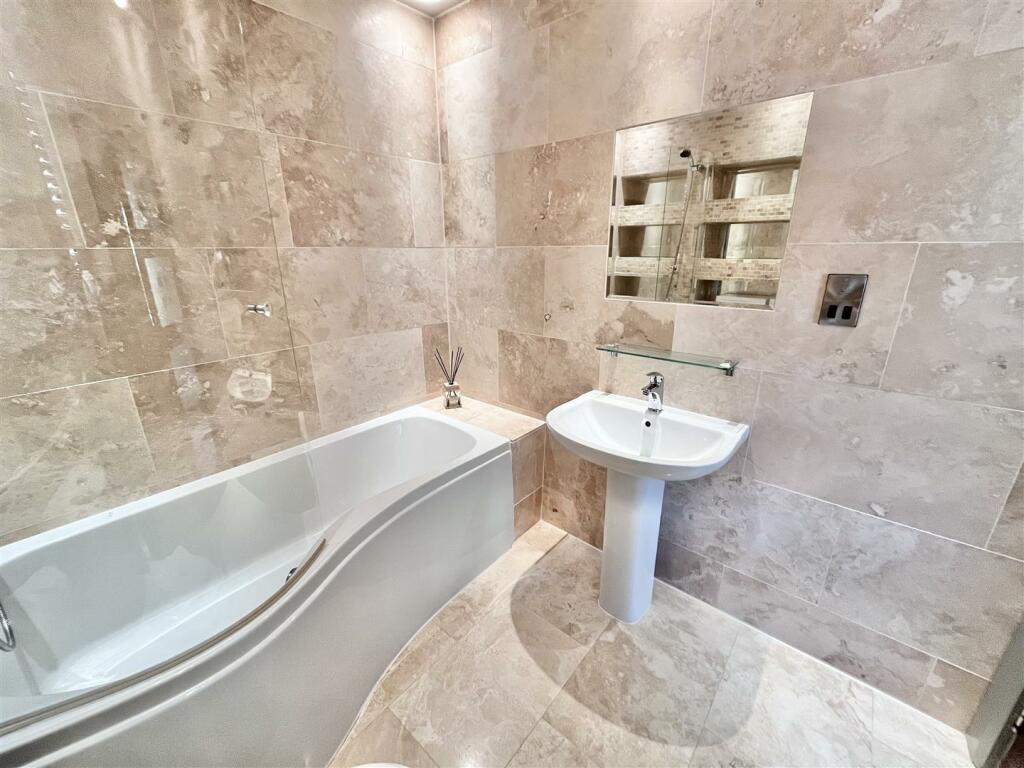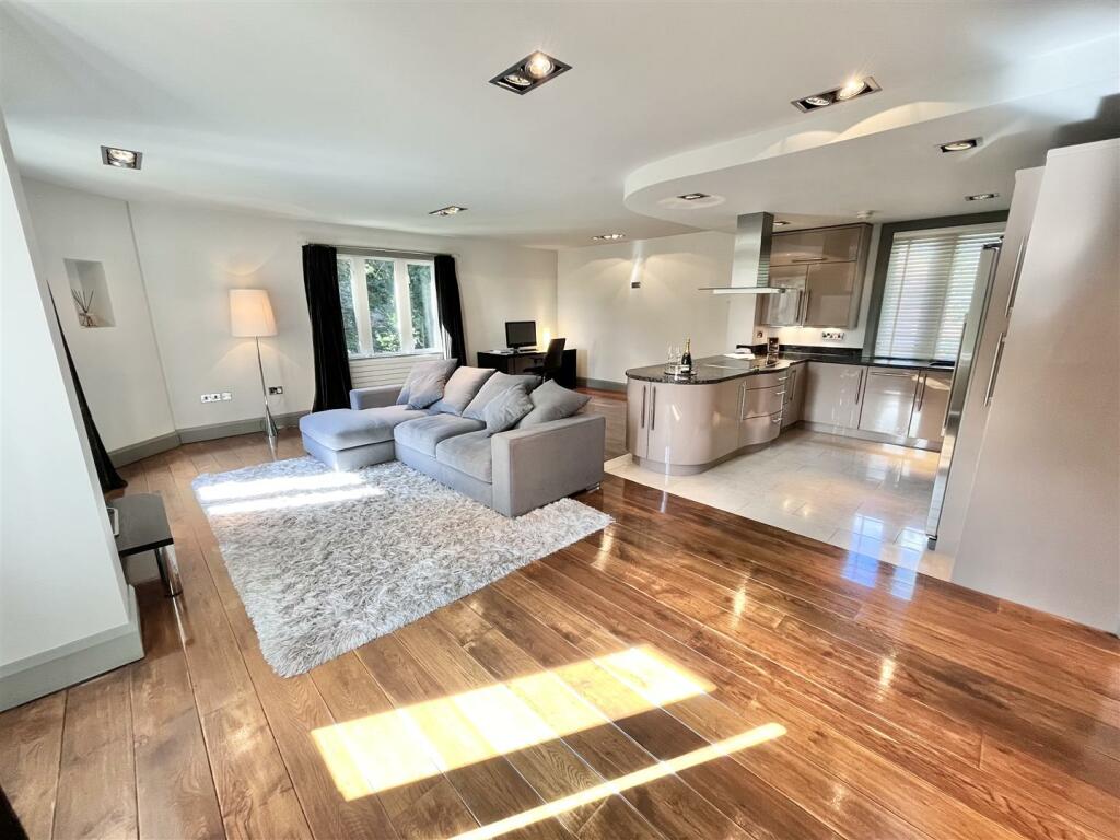 This property is a two-bedroom, two-bathroom apartment situated within the prestigious Norcliffe Hall estate in Styal, Cheshire. The estate itself is a beautifully maintained Grade II listed mansion built in 1831, offering a unique and historic setting. The apartment’s interior features a modern, open-plan design, boasting a high-spec kitchen with integrated appliances, ample living space, and stylish bathrooms. Images showcase high-quality flooring and overall good interior maintenance.