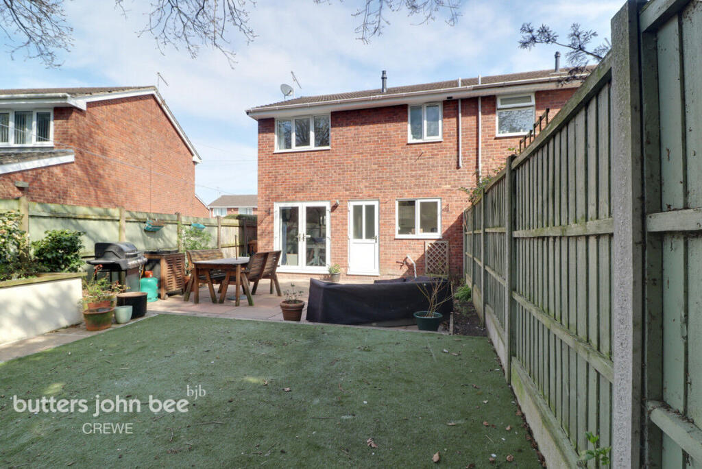 This is a three-bedroom semi-detached property located on Rectory Close in Wistaston, Crewe. It is listed by Butters John Bee with an asking price of £200,000. The property features one bathroom. The house appears to be in generally good condition, with a modern kitchen and bathroom. It also has a decent-sized garden with a patio. The property is located close to local schools and transportation links, making it a suitable option for families and commuters. Considering the location, condition, and size, the asking price seems reasonable within the local market. The property is located close to local schools and transportation links, making it a suitable option for families and commuters.