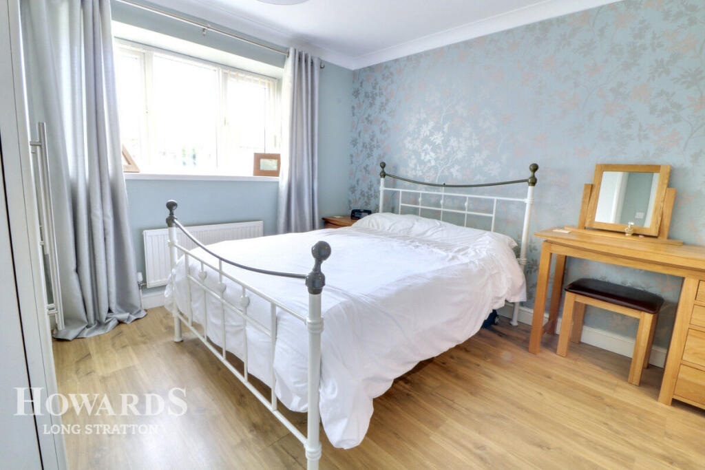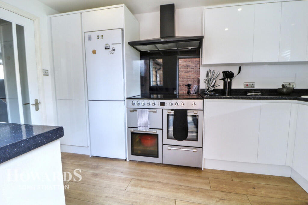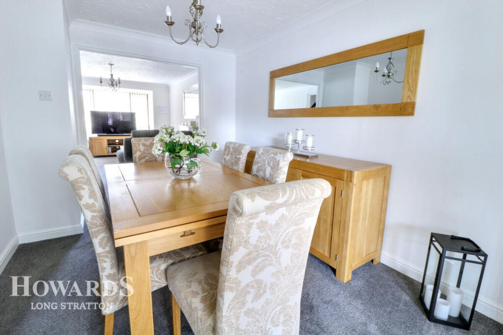 This property is a 4-bedroom, 2-bathroom semi-detached house located in Long Stratton, Norfolk. The property benefits from a good-sized garden, as shown in the provided images, and appears to be well-maintained and in good condition. The kitchen has recently been updated with modern appliances and fixtures. The location is convenient, with several schools within a reasonable distance, including Manor Field Infant and Nursery School (Good Ofsted rating), Long Stratton High School (Good Ofsted rating), and St Mary’s Church of England Junior Academy (Good Ofsted rating). While specific transportation links are not detailed, the proximity to schools suggests a family-friendly neighbourhood. The list price of £300,000 is slightly below the average price for the area (£426,053), and given the apparent good condition and the inclusion of a garden, it could represent good value for money. However, without knowing the square footage, a definitive assessment of value per square foot is not possible.