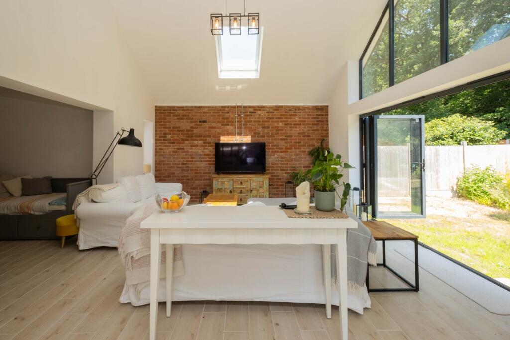 A striking detached residence, which has undergone an extensive transformation, featuring an enchanting garden which has direct access into the woods behind. Fitted with a range of energy efficient features including solar panels and air source heat pump. A must see home!