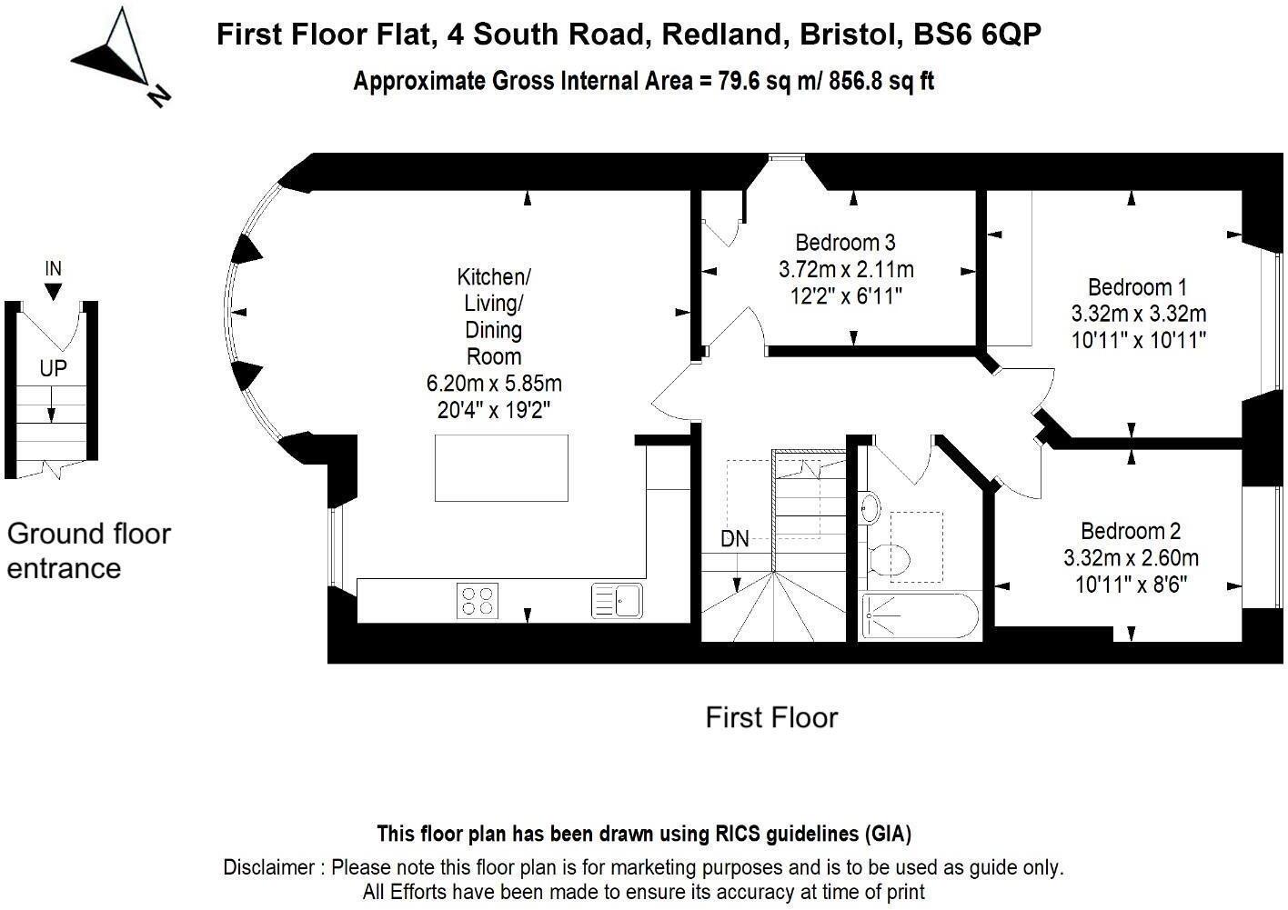 This property is a 3-bedroom, 1-bathroom flat located in Redland, Bristol. Redland is a popular area known for its excellent schools and convenient location. The property itself appears to be well-maintained and recently renovated, with a modern kitchen and updated bathrooms. The inclusion of a garden is a desirable feature, especially for a flat in this area. While the plot size is not explicitly stated, the images suggest a reasonably sized garden. Comparing the list price of £499,950 to the average price of £546,151 and average price per sqft of £499 in the area, the list price seems reasonable, particularly considering the property’s apparent condition and desirable features.