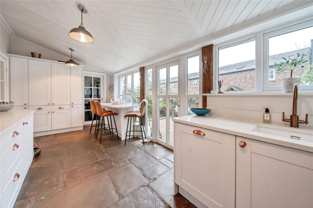 Upon entering this charming home, you are welcomed by a bright and inviting hallway, complete with stylish tiled flooring. The lounge is a truly impressive space, featuring original exposed beams, solid oak flooring, and a cosy log burner – perfect for relaxing evenings. To the r...