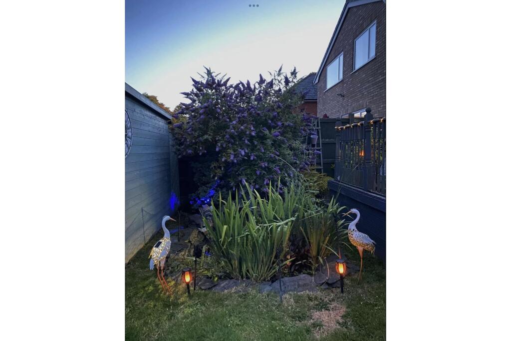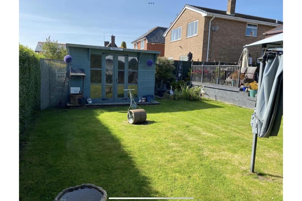The property is situated in a residential area. The images show a well-maintained property with a sizable garden, including a patio, hot tub, and shed. The interior appears modern and well-presented, with a recently updated kitchen and bathroom. The property benefits from a conservatory which extends the living space.