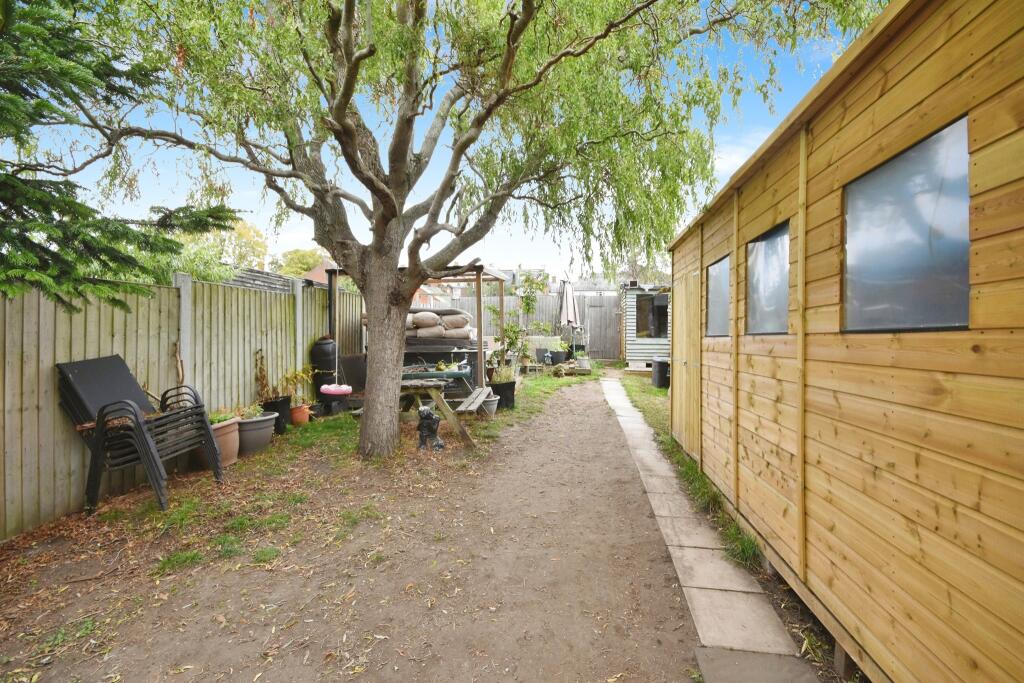 This end-of-terrace property on Harvey Street, Halstead, offers three bedrooms and one bathroom. The property benefits from a modern kitchen and bathroom, and a well-sized garden with mature trees and sheds. The property is located within a reasonable distance of schools and local amenities. The list price of £310,000 appears reasonable when compared to the average price in the area.