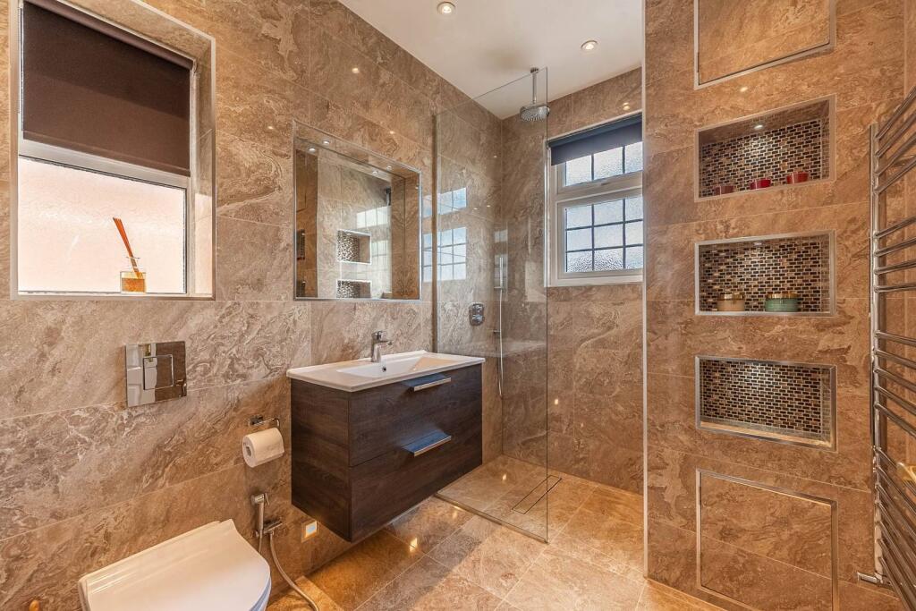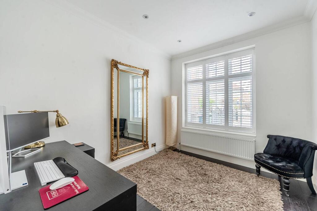 Finished to an excellent standard throughout, this stunning 5/6 bedroom house is spaciously arranged over 3 floors and benefits from en-suite facilities, designer kitchen, and a large garden.
