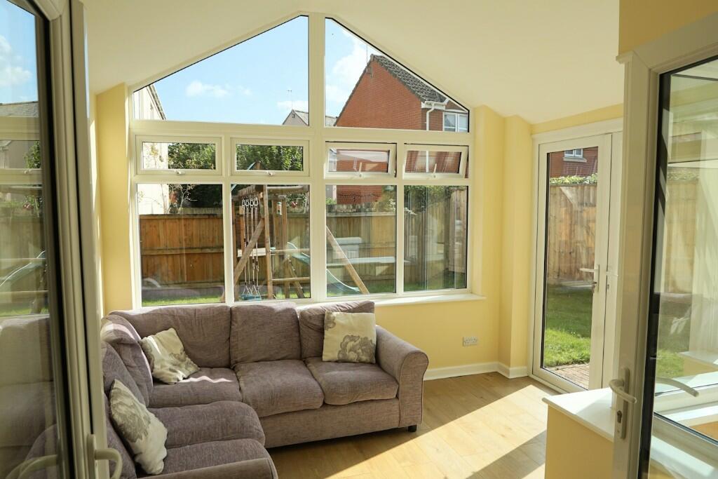 A superb detached 4 bedroom family home at the end of a small cul de sac with a double garage, stunning sun lounge extension with church style window and big open plan re-fitted kitchen / dining room.