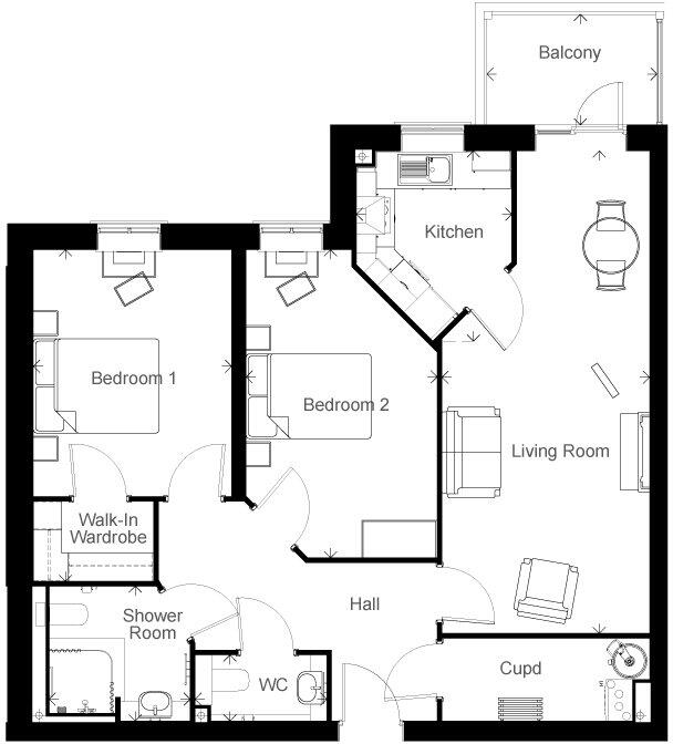 Property 18 is a first floor two bedroom apartment. There is a walk-in wardrobe to the master bedroom as well as a separate fully fitted modern kitchen, shower room, an additional WC and storage space. This property also benefits from a balcony leading out from the living room, that looks onto th...