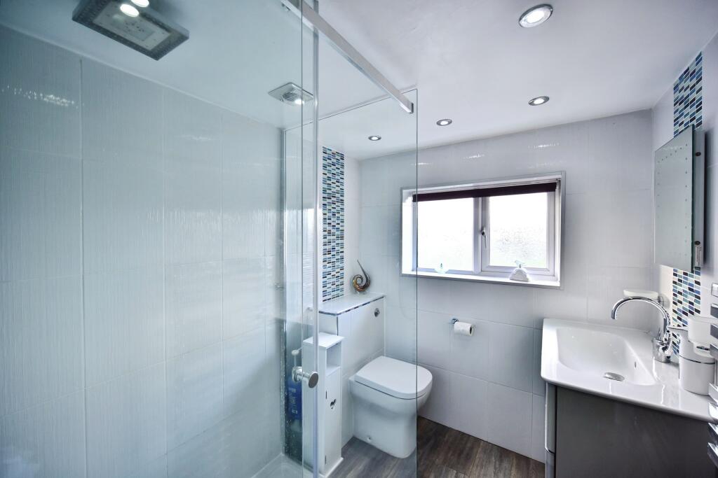 This is a semi-detached property on Johnson Road, Sittingbourne, featuring three bedrooms and two bathrooms, with 967.68 sqft of living space. The property benefits from a modern interior, including a well-fitted kitchen and contemporary bathrooms. A conservatory extends from the kitchen, leading to a garden that includes a versatile outbuilding converted into a living space with its own bathroom and kitchenette. The location is convenient, with proximity to schools and the Sittingbourne train station. However, the asking price of £415,000 appears high compared to the local market averages for similar properties in the area.
