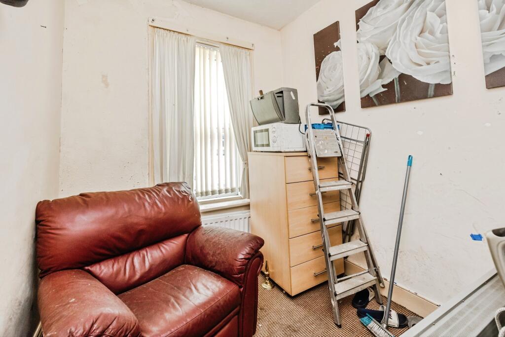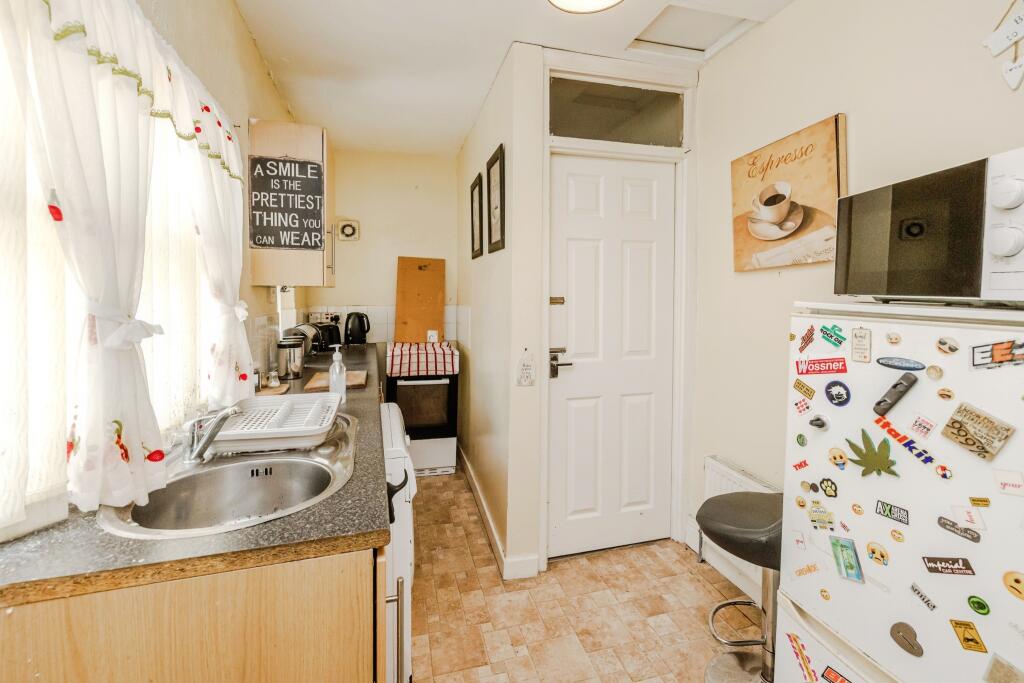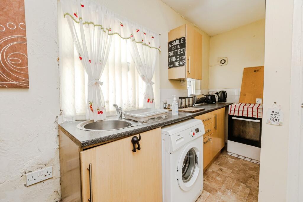 This ground floor flat is located in Elswick, Newcastle upon Tyne. The property benefits from being close to several schools, including West Newcastle Academy (rated good by Ofsted) and several primary schools. Transport links are also relatively convenient, with several train stations within a reasonable distance. The property itself is a two-bedroom, one-bathroom flat with a total area of 494.59 sqft. Based on the images provided, the property appears to be in need of some modernisation and updating. While the structure seems sound, there are signs of wear and tear throughout, particularly noticeable in the walls and some of the fixtures. The kitchen and bathroom are dated and would benefit from refurbishment. The presence of a fireplace is a positive feature. The property includes a small garden or yard area. Considering the average price per sqft in the area is £423 and the list price is £65,500, the price seems relatively reasonable, especially given the need for modernisation. However, it is important to note that the average property price in the area is significantly higher at £461,500, reflecting the higher average sqft of those properties.