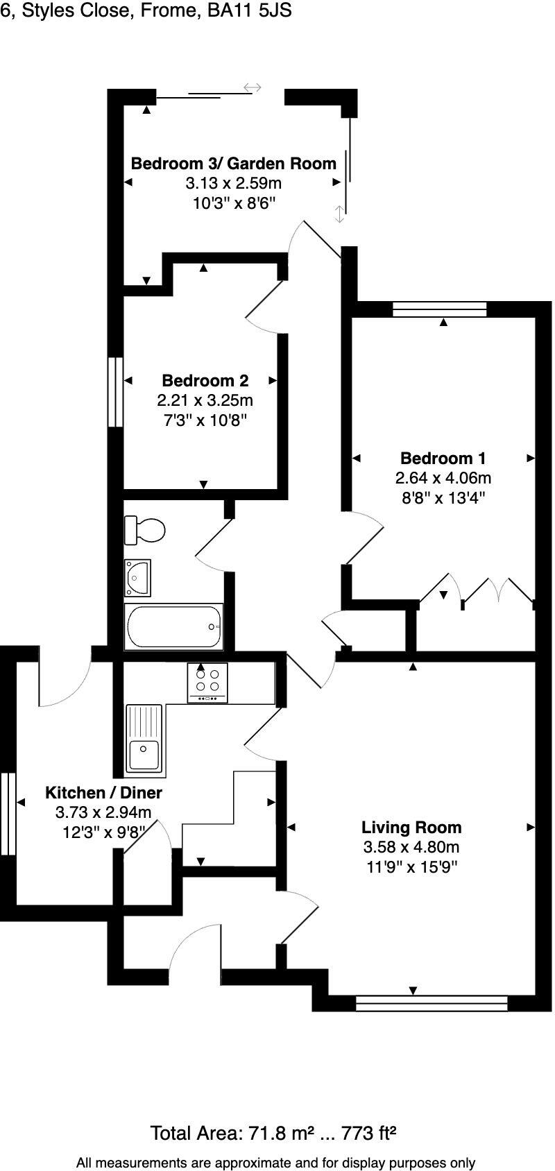 The property is located in Styles Close, Frome, Somerset. It is a 3-bedroom, 1-bathroom property with a plot size of 773 sqft and a list price of £375,000. The average property price in the area is £448,389, with an average price per sqft of £320. The property appears to be in good condition, having undergone recent renovations or modernisation. The kitchen and bathrooms look newly fitted. The interior is largely unfurnished. There is evidence of some minor garden maintenance required. The property benefits from a garden, although it is relatively modest in size. Considering the average house price in the area is higher than the list price, and given its apparent good condition and the inclusion of a garden, the list price could be considered reasonable, potentially representing good value for money. However, the lack of sqft information for the property prevents a precise comparison to the average price per sqft in the area. The condition of the garden may also affect the final perceived value.