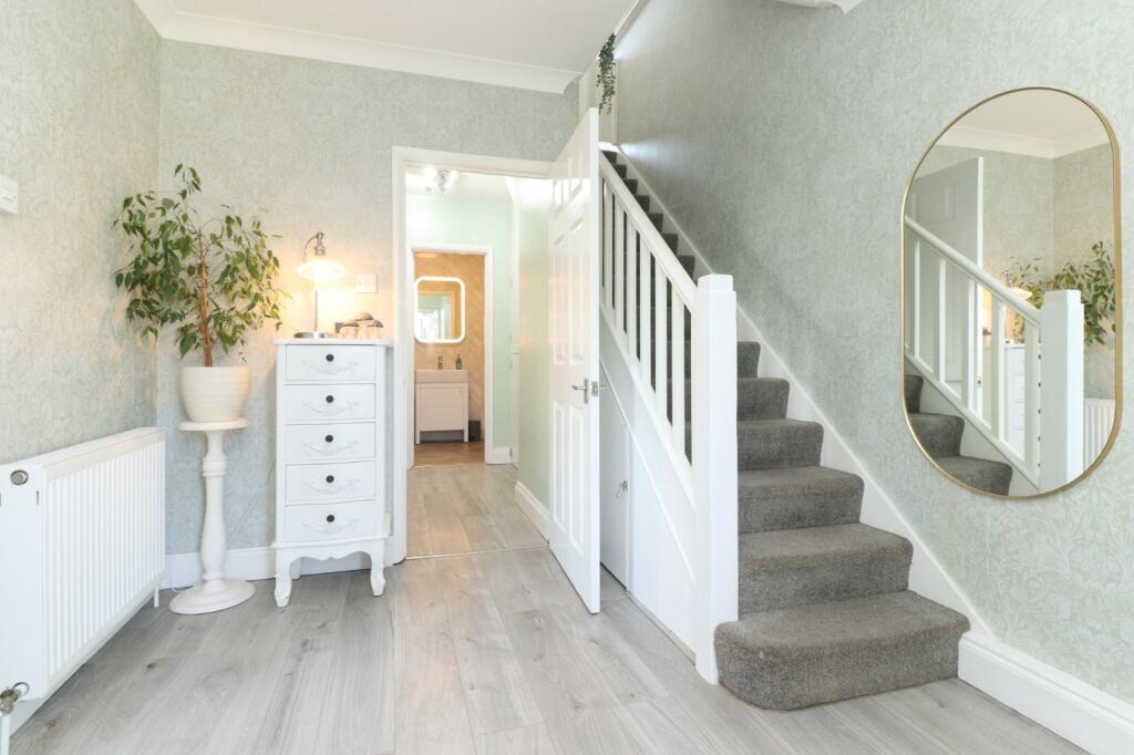 This is a semi-detached property in Birchington, Kent. It features four bedrooms and two bathrooms. The interior is modern and well-maintained. The property benefits from a garden with a patio area and an outbuilding currently used as a bar. The location offers reasonable access to local amenities, schools, and transportation. The asking price appears to be on the higher end compared to the average for the area.