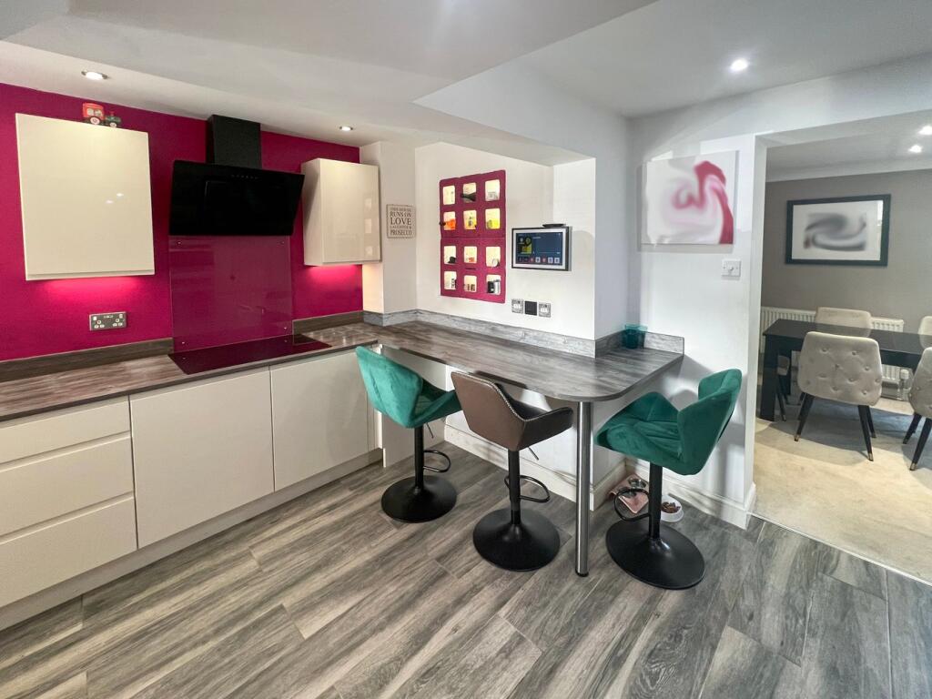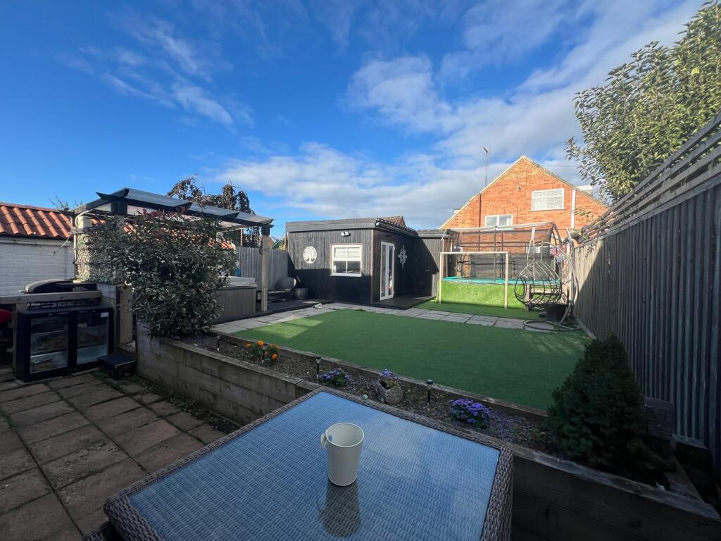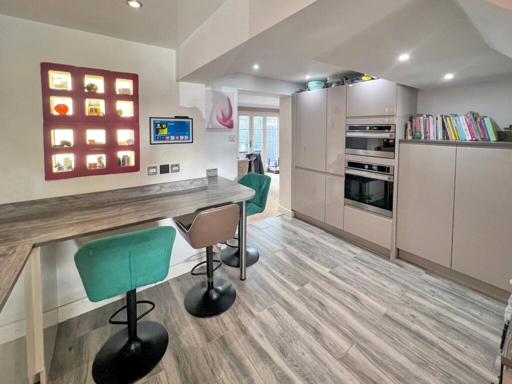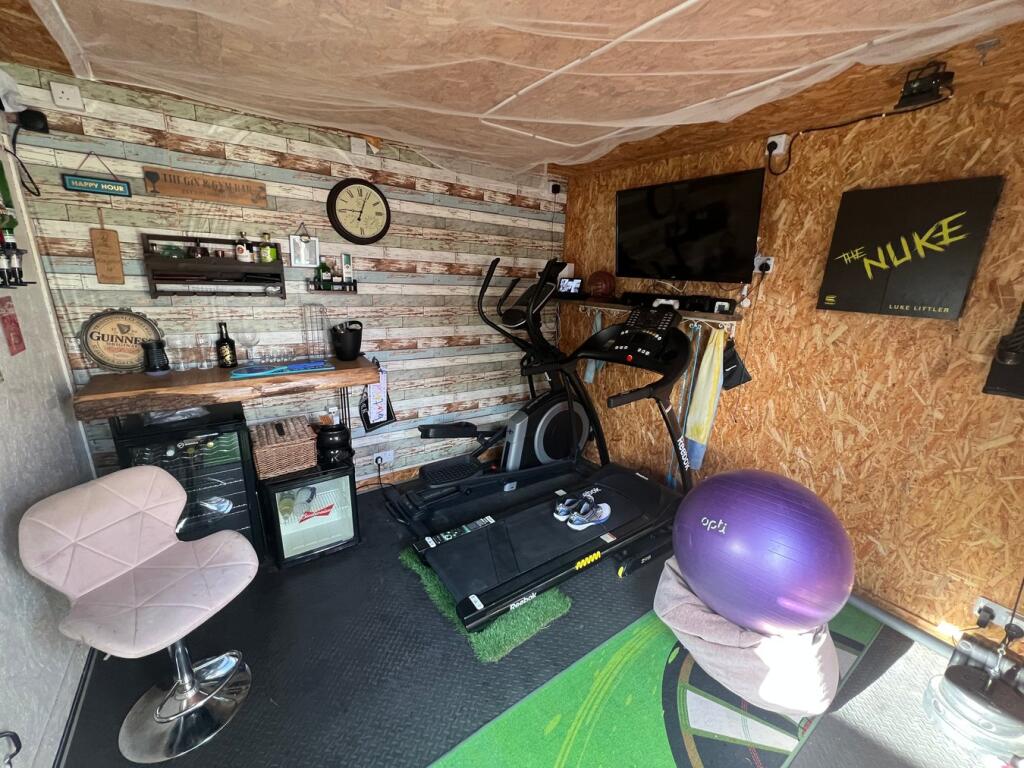 This is a 5-bedroom semi-detached house in Harpole, Northamptonshire. The property appears to be in generally good condition, with a modern kitchen and bathrooms. It has a garden with both patio and lawn areas, plus a shed/outbuilding converted into a gym/bar. The location is desirable, with a good primary school nearby and easy access to Northampton. The price is slightly above the average for the area, but this reflects the size and features of the property. Overall, this property would make a good family home.