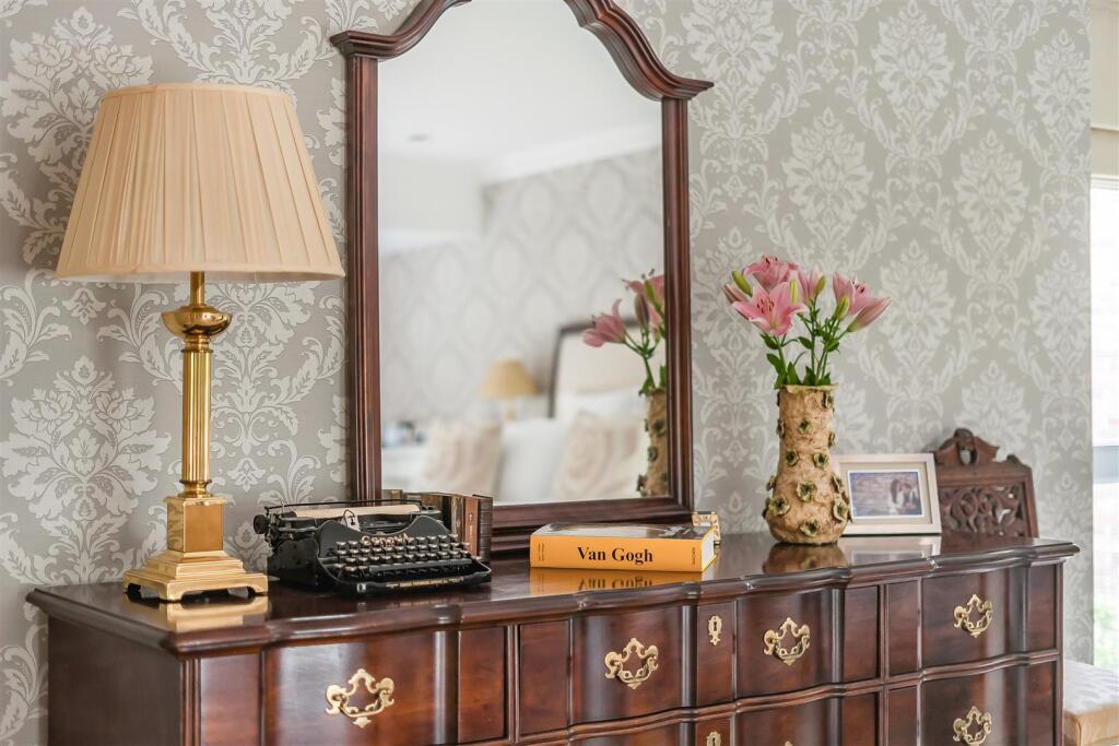 This five bedroom gated family home is beautifully presented and is the perfect blend of modern design and comfortable living space. The South facing home captures the natural light through the large picture window in the hallway, which includes a walk in cloakroom and WC. The modern an...