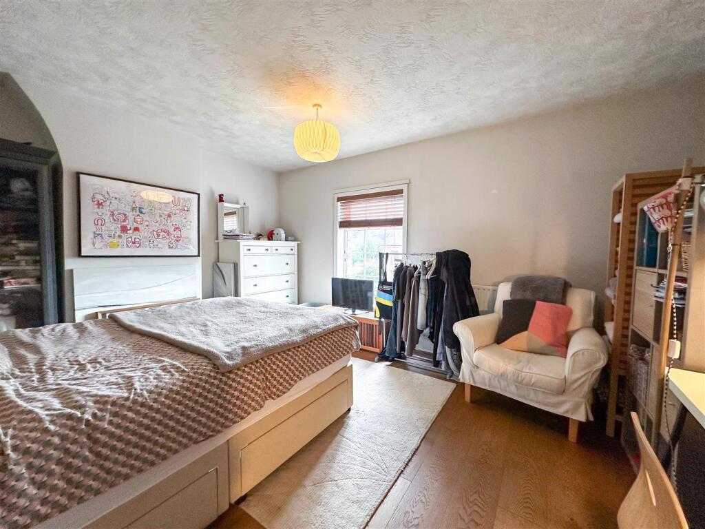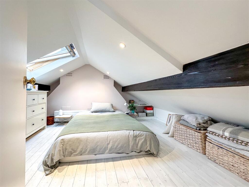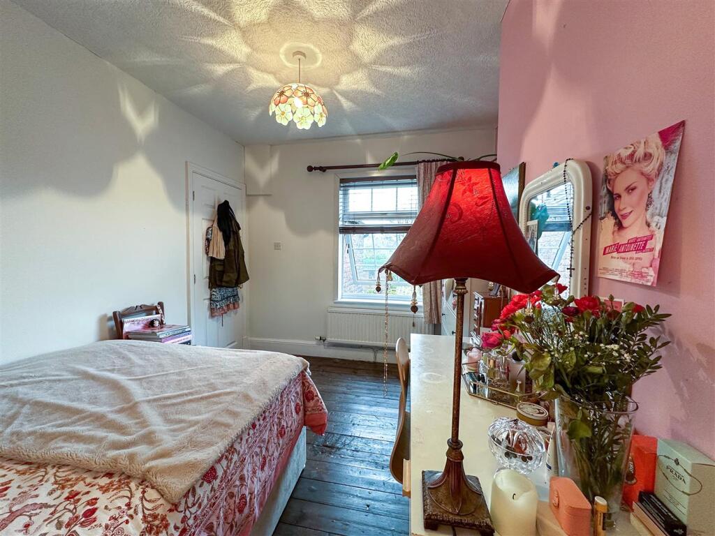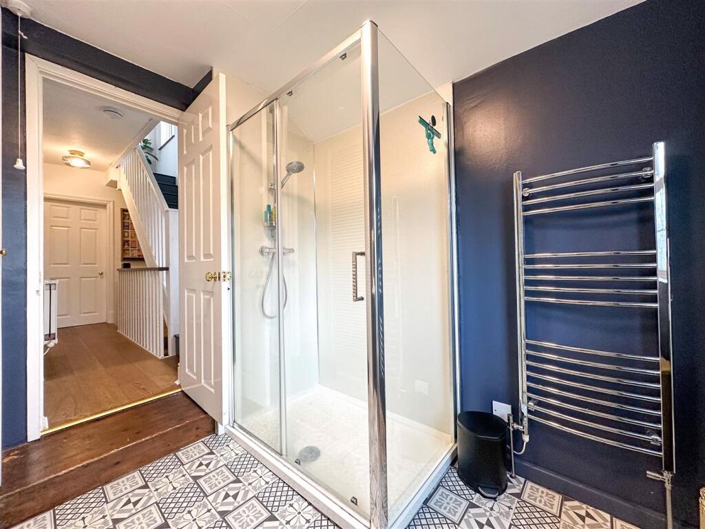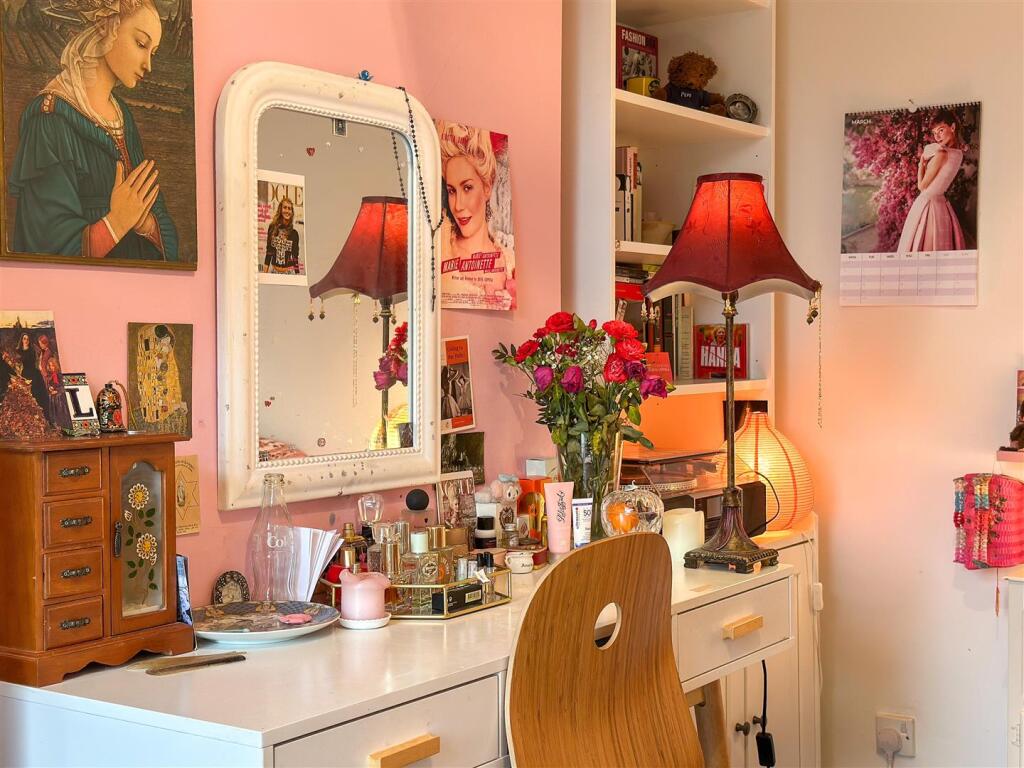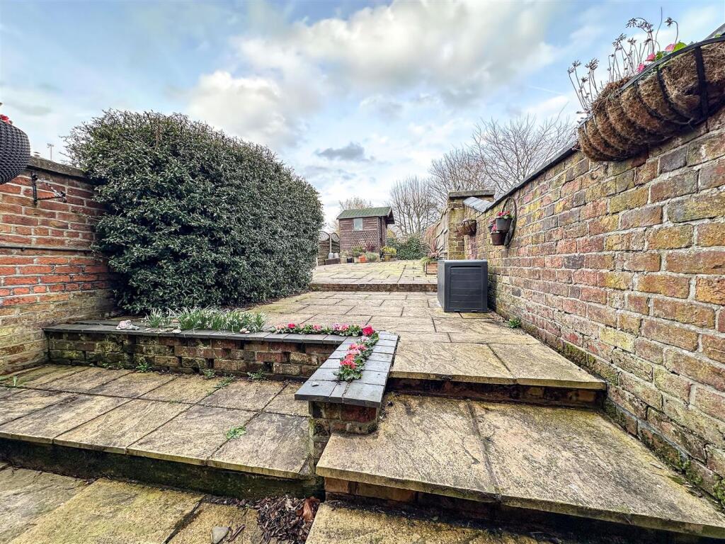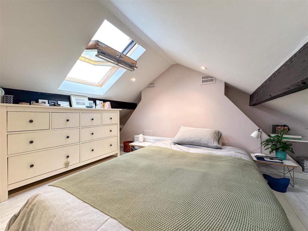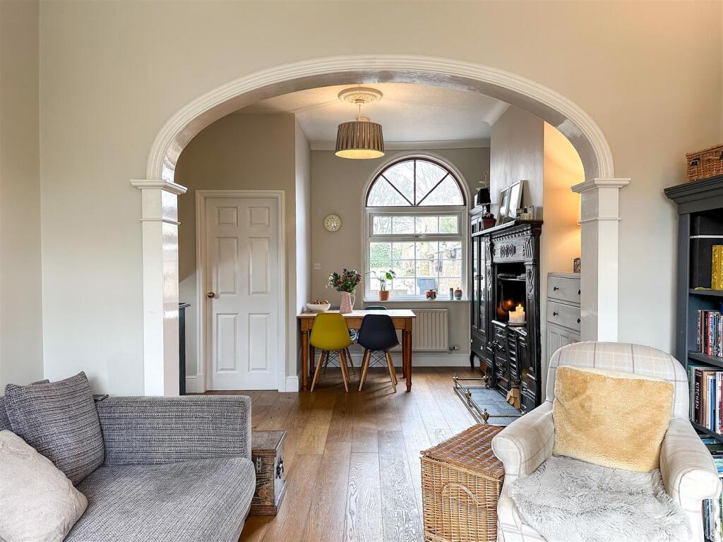 The property itself appears to be well-maintained and presented. The images show a modern kitchen and bathroom, suggesting recent renovations. The interior is tastefully decorated and the property benefits from character features such as the original fireplaces. The garden is relatively small but well-maintained and provides a private outdoor space.